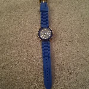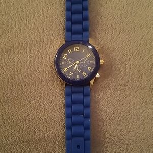 Blue and gold wrist watch, needs new battery.