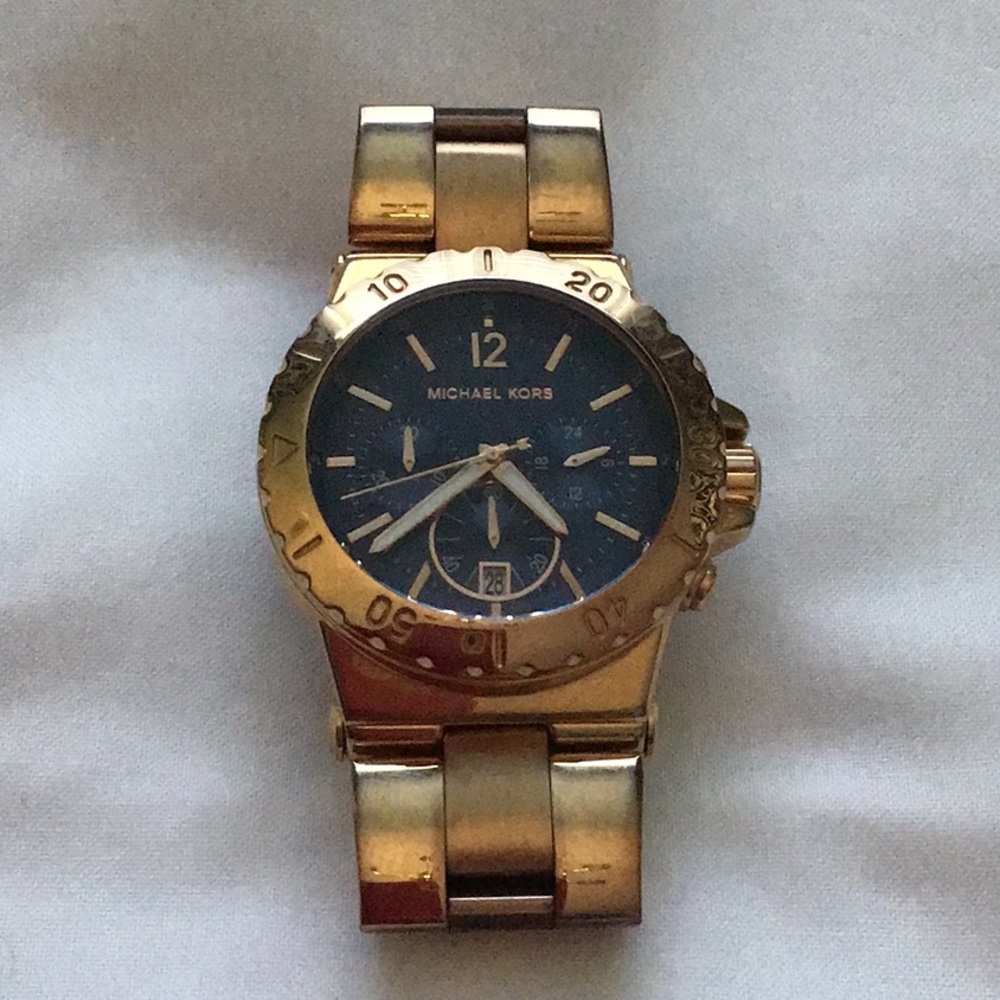 Rose gold w/blue face designer watch