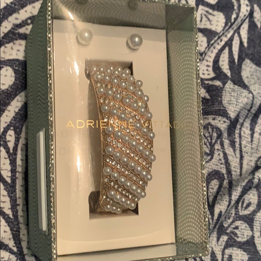 Beautiful gold bracelet with diamond an pearl details, matching pearl earrings.