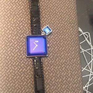 Ladies watch, deep purple glass, patent leather strap, mint condition