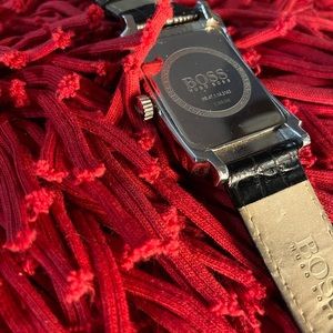 Hugo Boss watch with leather straps and adjustable to fit. With 8 holes. It needs a new battery
