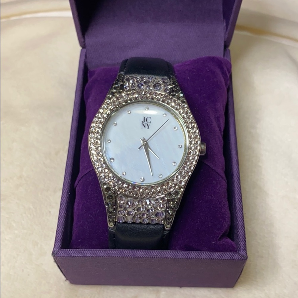 Jimmy Crystal New York wrist watch with leather band and crystals made with Swarovksi elements.
