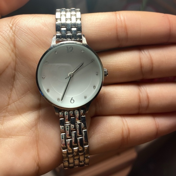 Stainless steel vintage watch //shiny studs as numbers //hasn’t been worn//shiny silver finish