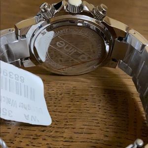 Mineral crystal; brushed and polished stainless steel case and bracelet