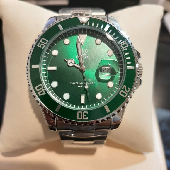 Trendy men's watch. Stainless steel. Rotating bezel. Watch dial comes in 2 different colors. Back dial is available as well.