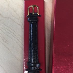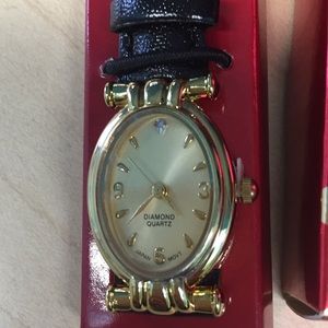 Brand New in box..elegant gold color and black leather band