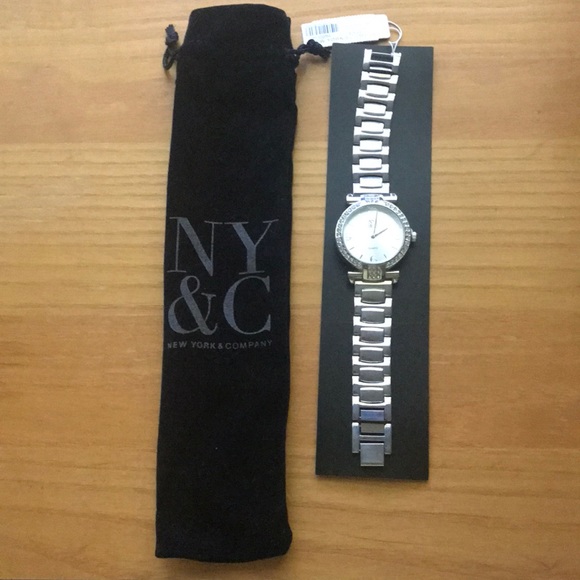 Brand new women’s New York & Company watch Rhinestone detail Silver face Silver tone metal bracelet