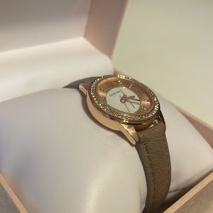 Brand new watch. Never opened from box. Perfect small gift. Never worn. Brown learher strap. Color of the watch is rosegold.