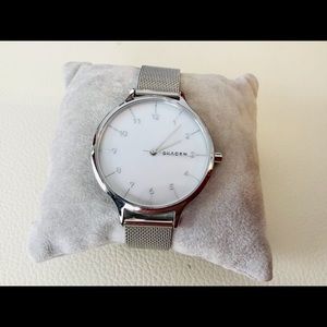 Skagen watch, I love them then I sell them on to next, battery working brand new before Xmas. Looks opalescent background, 1” face