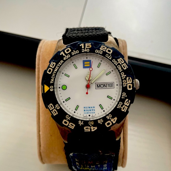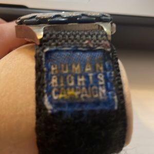 Human Rights Campaign Watch. Velcro band. Watch needs battery and band logo is a bit worn