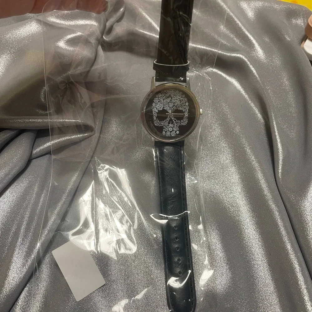 Skull watch black band floral design.NEW nickel free