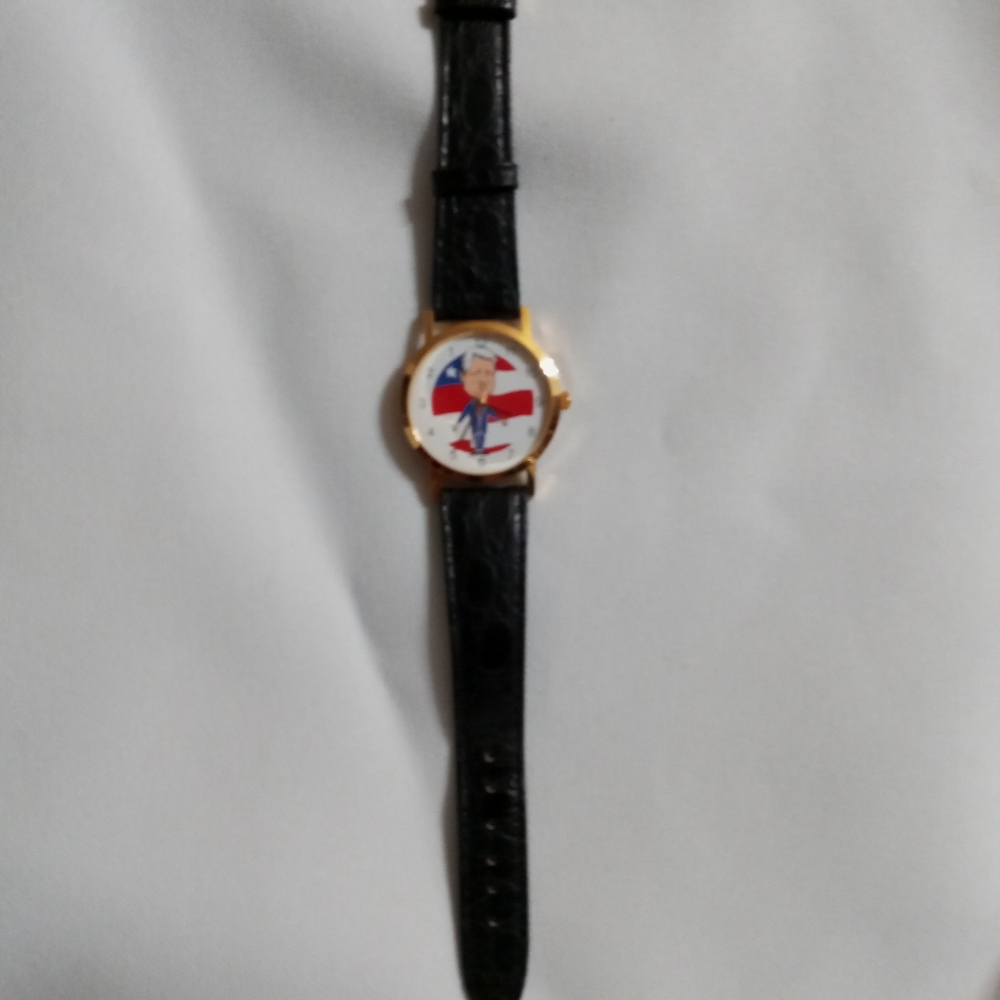 vintage collectible Bill Clinton backwards running watch. watch has leather band and may need new battery. #201