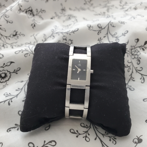 ladies Swiss Calvin Klein petite wrist Quartz steel watch. Needs battery. Has some scratches.