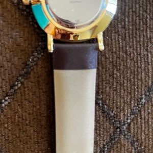 MSPCI gold tone classic watch with stainless back and brown band. Brand new!