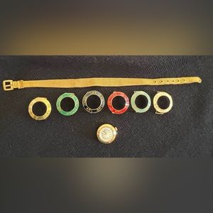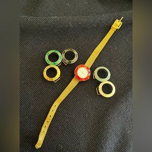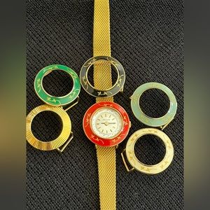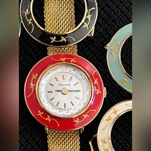 Vintage, Pre-owned Nivada Colorama Women's Watch Set, 1960s. Swiss made. 6 different colored bezels. Serial #70016. Will need battery. Sold as is, please view all photos as they are part of the description before purchasing.