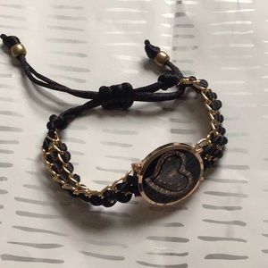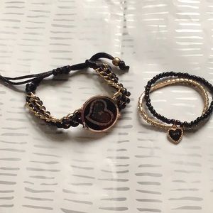 NWOT beautiful rhinestone heart black and gold watch with matching bracelets. watch is adjustable
