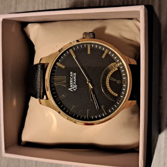 Armani Exchange Stainless Steel back, Navy Blue Leather Band