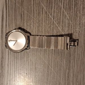 Movado Bold Silver Stainless Steel Diamond Cut band watch