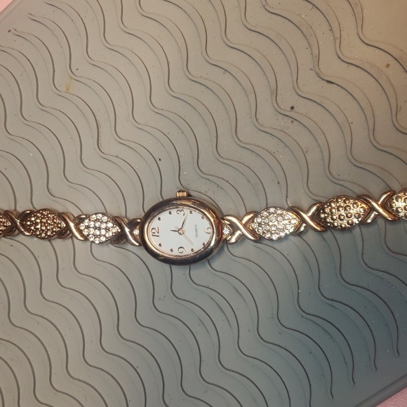 rose gold tone with rhinestones watch. Japan movement