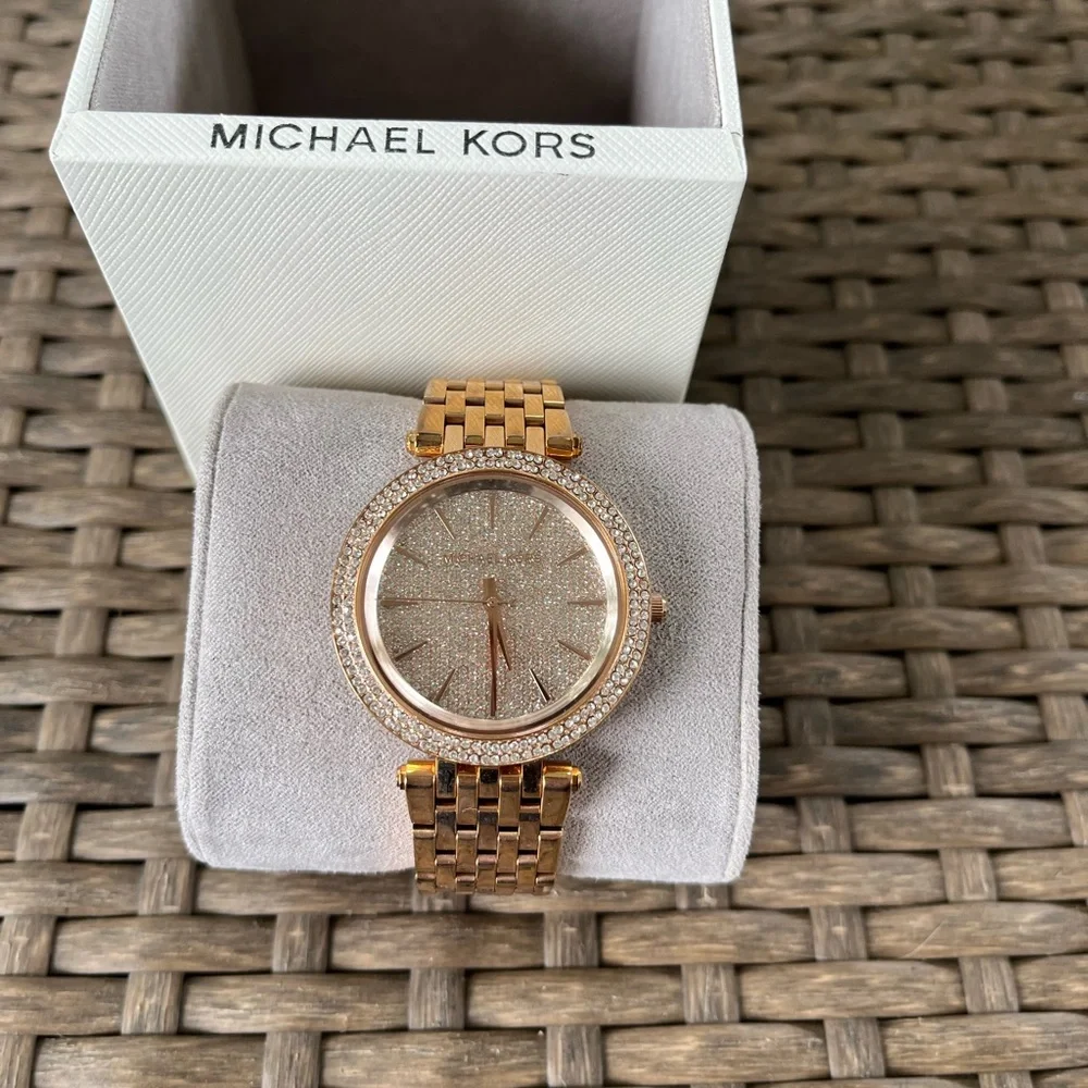 Michael Kors rose gold watch. Worn twice. In excellent condition with box.