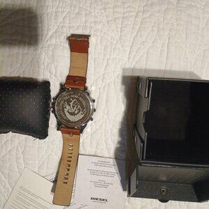 Big Daddy Diesel Watch. DZ-7394 111805. Scratch protection clear sticker from factory still on face and back of watch. Leather band showing a little wear at point of latch. Like new condition. no damage or scratches on watch.