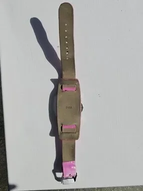 This is a vintage watch. It's Happy Bunny watch, a popular brand from the 2000s created by illustrator Jim Benton. The watch face features the character in a straitjacket with the classic sarcastic slogan, "cute but psycho. things even out".