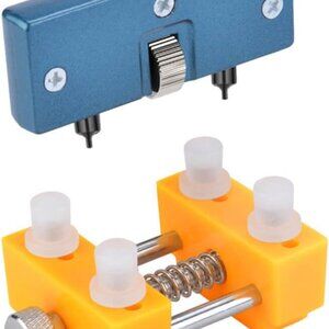 🧿EASY TO ADJUST AND USE: The watch battery replacement tool kit with adjustable tempered tips that adjust from 13 mm to 56 mm, and the watch case holder with 4 adjustable plastic pins that will minimize the risk of slipping and scratching