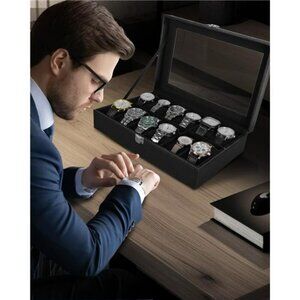 Watch Box Organizer 12 Slot PU Leather Glass Lid Display Case for Jewelry