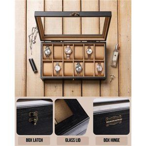 Watch Box, Watch Case for Men Women with Large Glass Lid, Wooden Watch Display