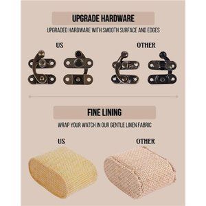 🧿[Multifunctional Organizer] Take off the pillow, and store the ring, earring, tie and cufflink in the spare slot, make the watch box a multifunctional organizer. The brass retro lock can be easily opened with only one hand, making it breeze to take out your items and keep your desktop tidy