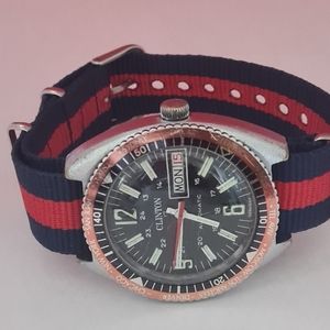 Swiss parts - 17jewels - shock resistant - WR 6ATM - Circa 1960s - some tiny lines on the crystal but these comes out over the years (patina) also give this watch some character. this watch was probably assembled in the USA. replaced the old crown for a new one! See last picture please.