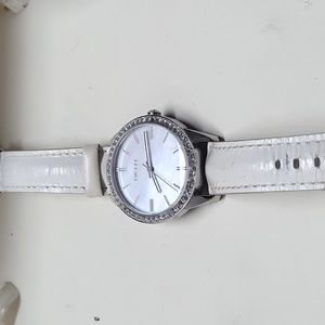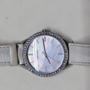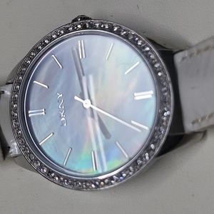 NEW WOMEN'S DKNY NY-8015 WATCH CRYSTAL NUMBERS AND CRYSTAL BEZEL WITH GENUINE LEATHER MOTHER OF PEARL BAND.................FAST & FREE SHIPPING