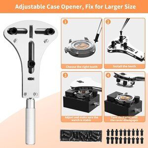 🧿INCLUDED XL WATCH WRENCH CASE OPENER up to 55MM, easy to open groove type oversize watches. This kit is perfect for common watch trouble, like opening watch back cover, watchband adjustment, changing watch batteries, watch band remover, watch resize, watch pins remover. You will never pay pricey watchmaker fees again