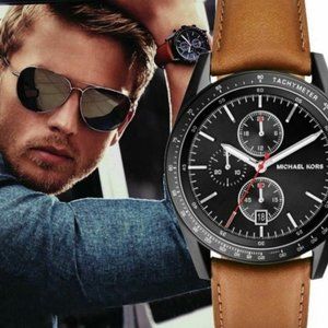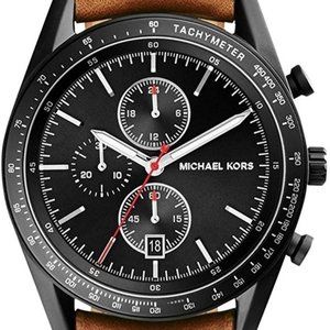 Michael Kors Leather strap Chrono Black Watch 42MM MSRP $335