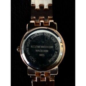 This stunning wristwatch from Kim Rogers is a must-have for any fashion-forward woman. The rose gold tone of the bezel, band, and dial creates a cohesive and elegant look. The analog display adds a touch of classic style to this modern accessory. Perfect for any occasion, this wristwatch is a versatile addition to your jewelry collection. Whether you're dressing up for a special event or adding a touch of glamour to your everyday look, this Kim Rogers wristwatch is sure to impress.