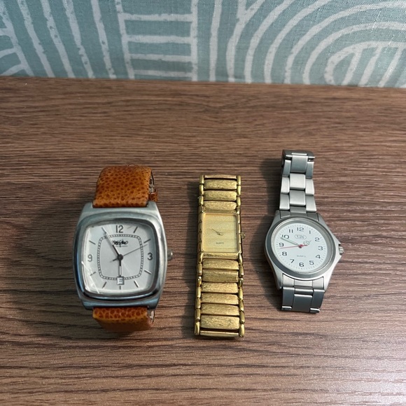 Set of two silver watches and one gold watch band. Stylish and versatile.