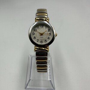 Watch Women Two Tone Gold Silver Easy Read Dial Stretch Band Quartz Working
