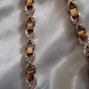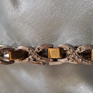 Vintage Watch and Bracelet Set Curved X Chain Design. Silver and Gold