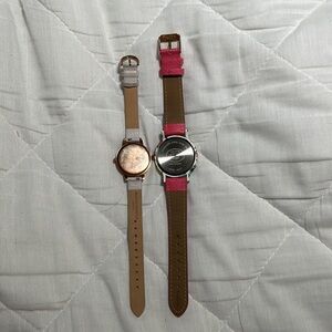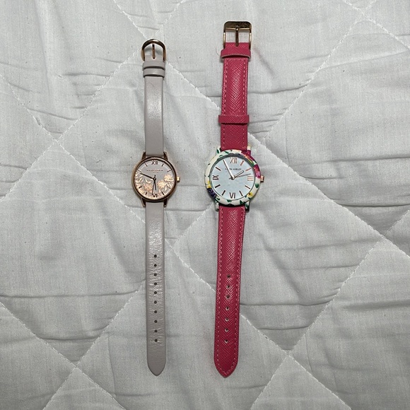 2 gently used watches, gray is from Olivia burton and pink is from Laura Ashley!! Both need replacement batteries