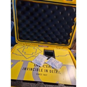 High impact and water resistant yellow watch storage case. Invicta logo and brand new unused. Comes with scratch proof card board sleeve.