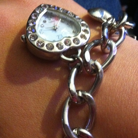 It is a black and silver watch/bracelet with 2 different lengths and it is also a charm bracelet the pictures are it all the way around