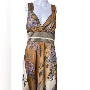 Watcher V Neck Knee Length Floral Dress Brown Size 8