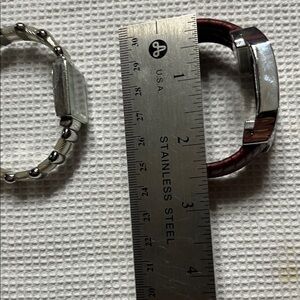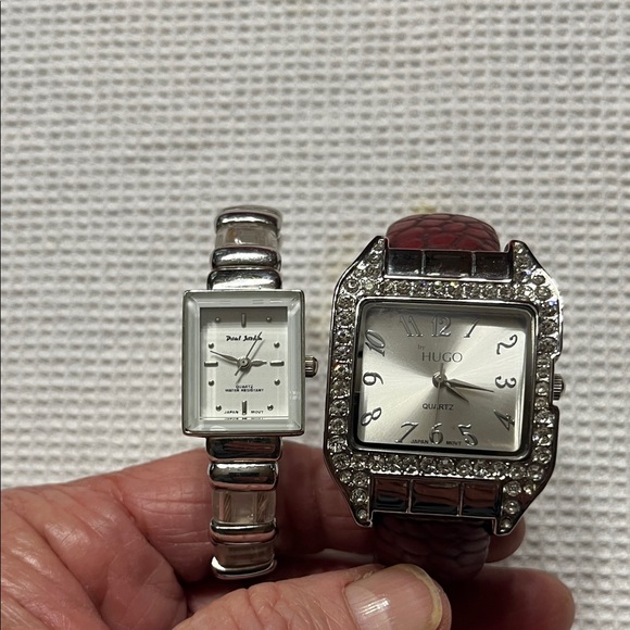 Novelty watches one red cuff one clear/silver cuff. BOTH NEED BATTERIES. No returns
