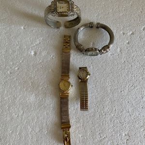 2. Cherish stainless steel quartz Japanese movement with a 7” gold band. Missing 4 accent jewels.