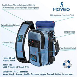 Water Bottle Holder Carrier - Bottle Cooler w/Adjustable Shoulder Strap