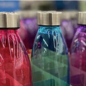 Water Bottles Mainstays Set of 4 Clear Plastic Drinking 22oz Stainless Steel NWT