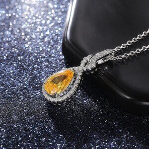 🔥 Water Drop CZ Dazzling Noble Yellow Gemstone Hollow Necklace, EVGG1110