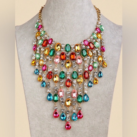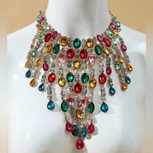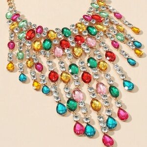🆕 Beautiful Rhinestone Water Drop, Tassel, Chandelier, Statement Necklace