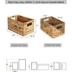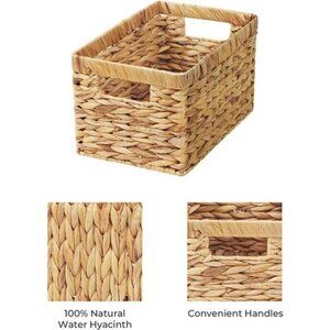 Water Hyacinth Wicker Storage Baskets Set of 2 Natural Organizer Bins