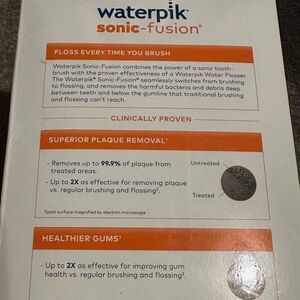 Comes with one sonic – fusion flossing toothbrush, one brush head, one travel case, and one brush head cover
